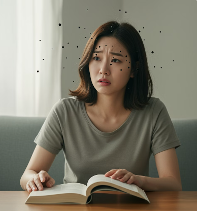 며칠 전부터 책을 읽을 때마다 검은 점이 자꾸 떠다니는 느낌이 있었는데요. 😕
